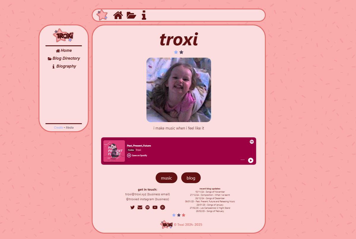 My main website, and passion project. Troxi.xyz is a music journalism blog honing in on my favourite areas of the industry, with two or more monthly updates. It's being worked on constantly, so look for updates.This site has (1) Redirect.